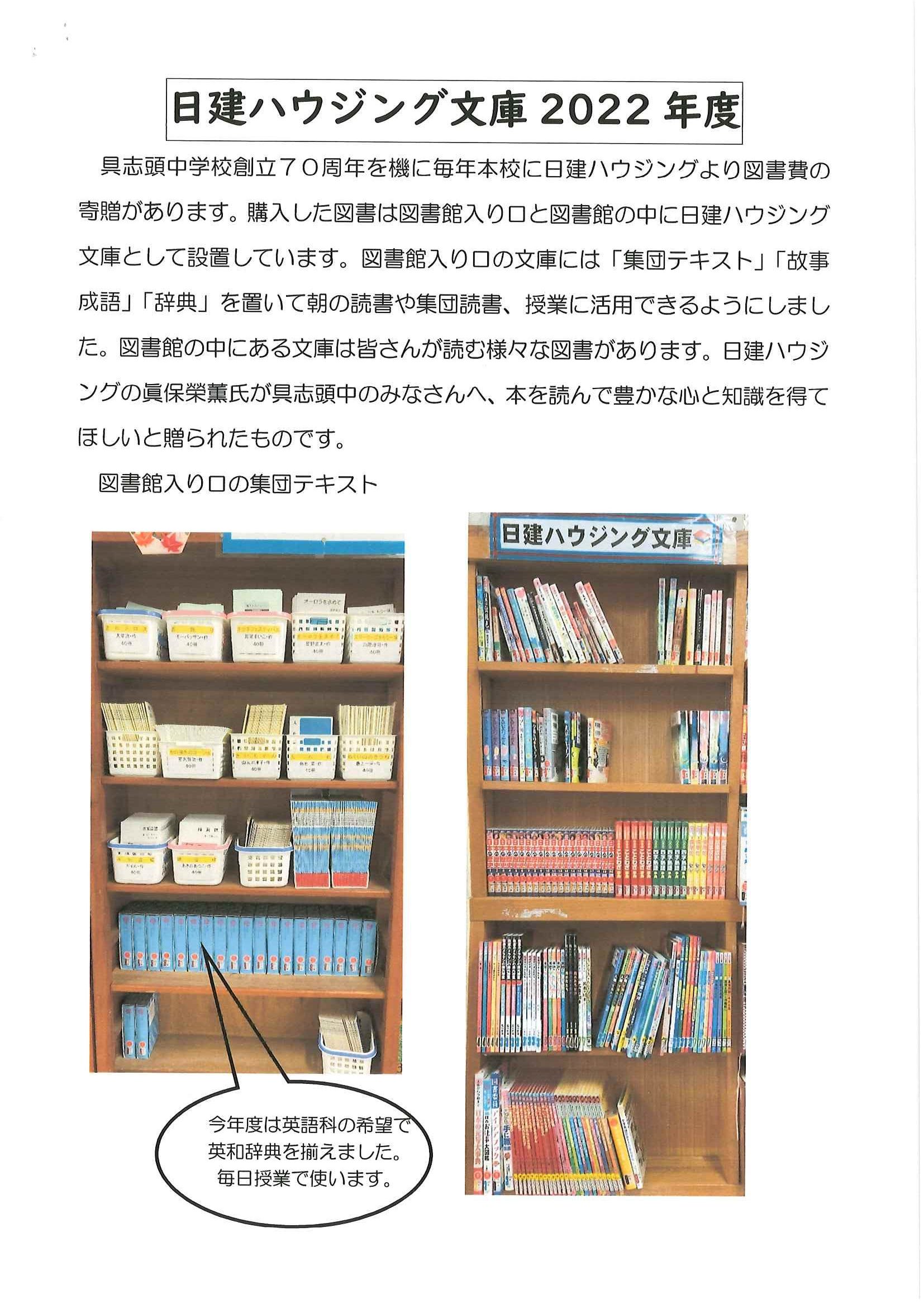 具志頭中学校・具志頭小学校・新城小学校より、図書費寄贈のお礼状が届きました