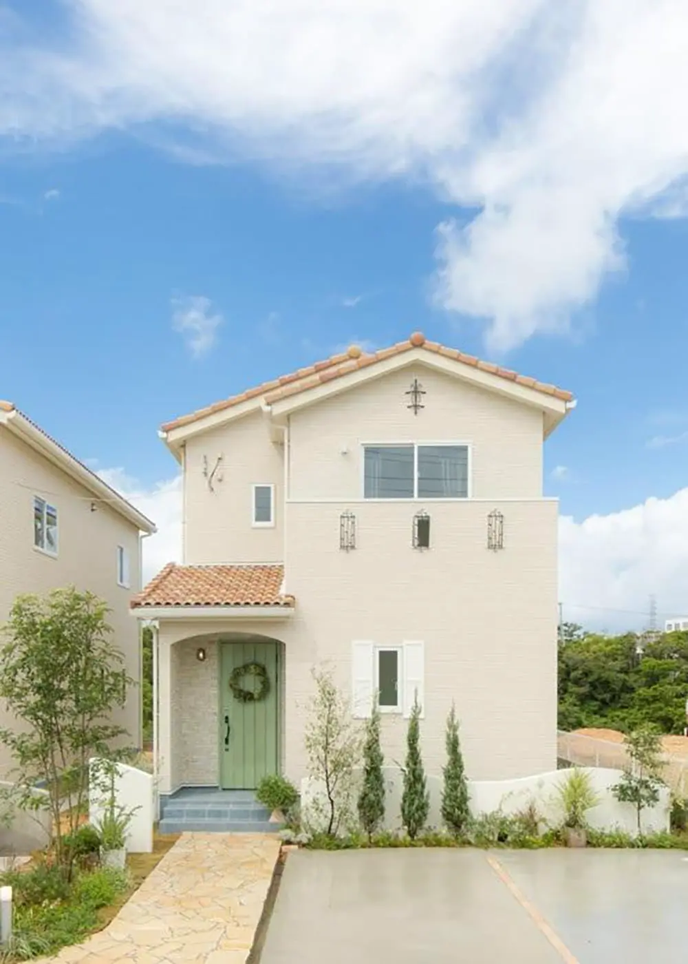空と太陽が似合う南仏調のデザインで統一された街並み。温かみのあるデザイン瓦をランダムに配置した屋根が落ち着いた外観を演出しています。