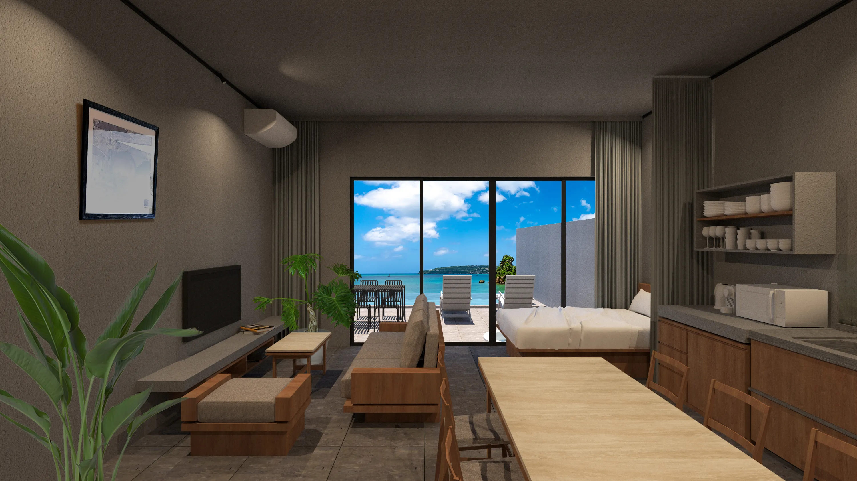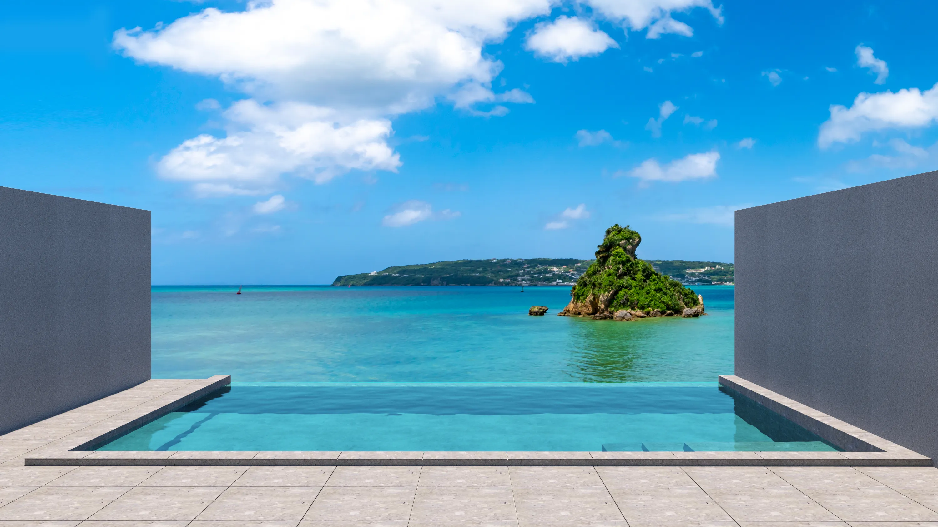 古宇利島を望み、美しい海とつながるようなインフィニティープールとリゾート感を味わえるジャグジー。心から解放されるようなゆったりとしたリビングは、本格的なキッチンを備え付け、一歩踏み入れた瞬間から、そのグレード感をご堪能いただけます。ホテルとは違う別荘のような過ごし方を、心ゆくまでお楽しみください。